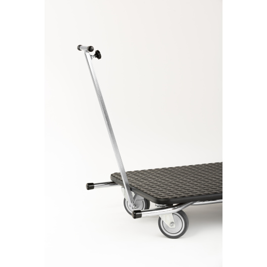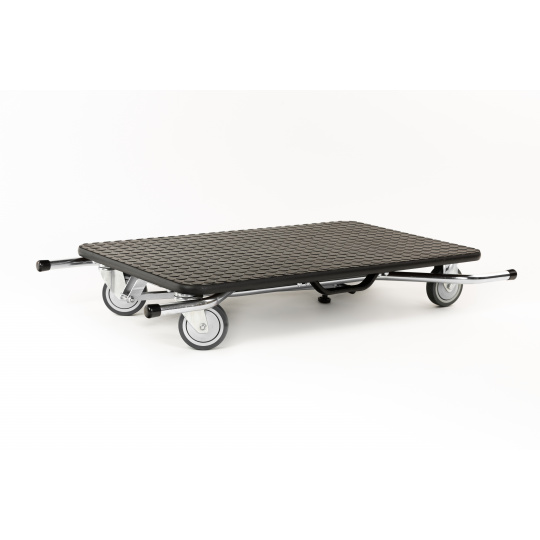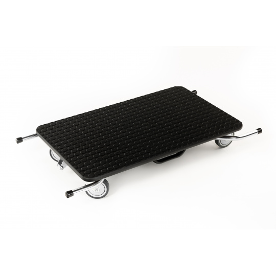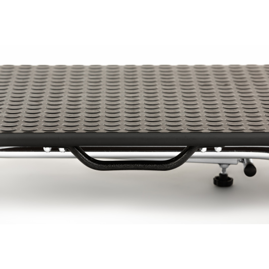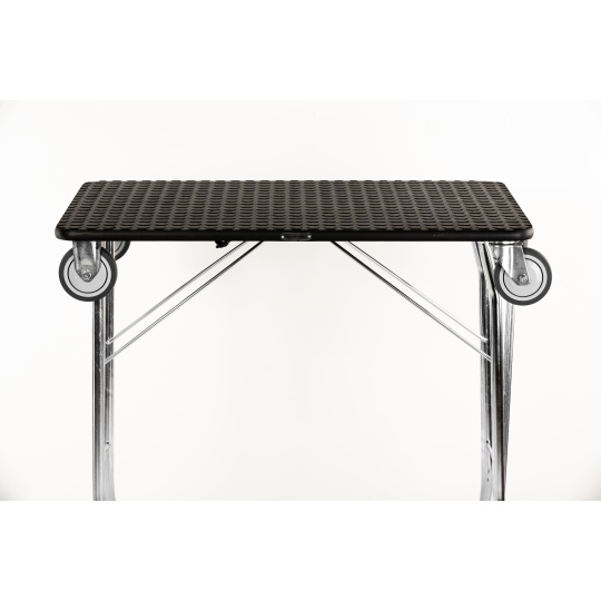 Do you want to comfortably groom your four-legged friend? Get a grooming table equipped with rubber wheels, 10cm in diameter, mounted on bearings. The table can be easily and quickly folded and unfolded like a cart. The load capacity of the table is 65kg and the cart is 200kg. The cart has a telescopic drawbar for towing, measuring 55 - 106cm in length. The surface of the table is covered with coin-patterned non-slip rubber, steel frame with powder coating, made in Italy. Weight approx. 15kg, height of the folded table 15cm and the unfolded standing table 79cm, work surface dimensions 80*50cm.