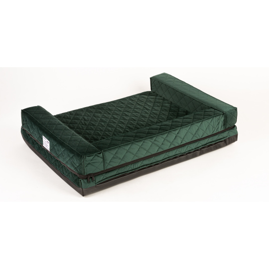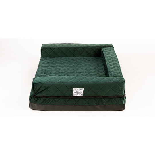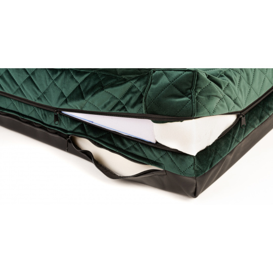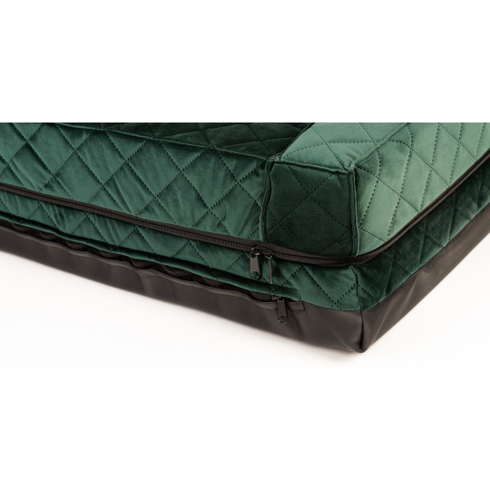 Orthopedic bed - green quilted velour/black eco leather