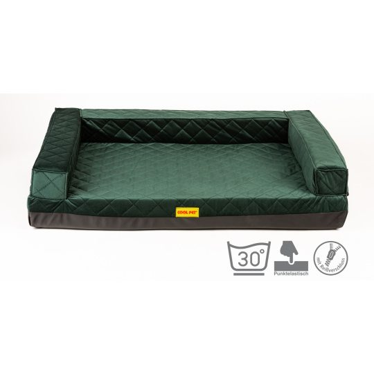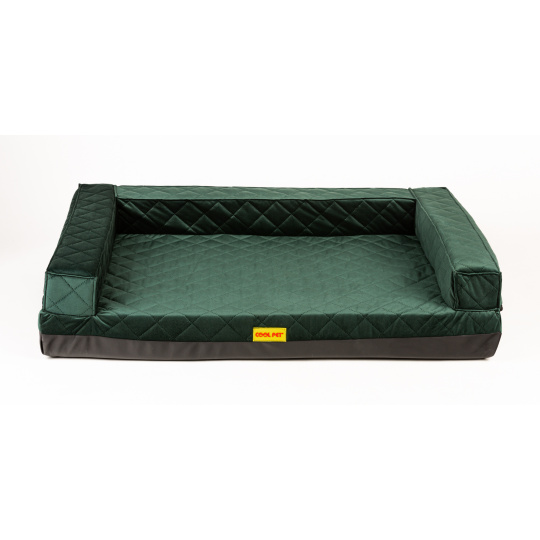 Orthopedic bed, 5 sizes, padded edge 10cm high memory foam, green quilted velour/black eco leather, couch 70x52cm, inner size 50x42cm