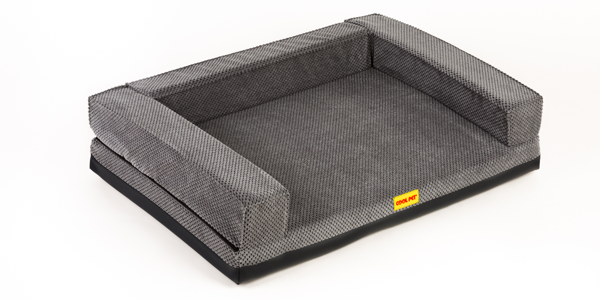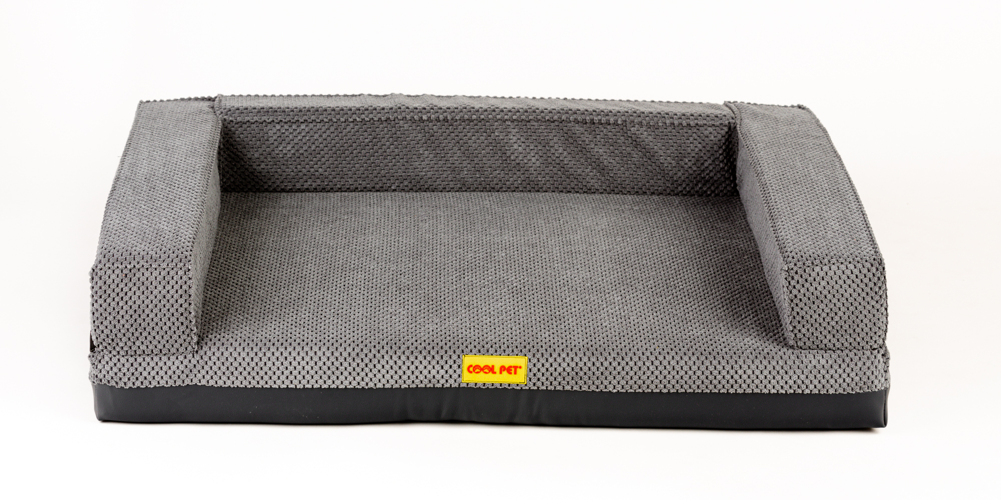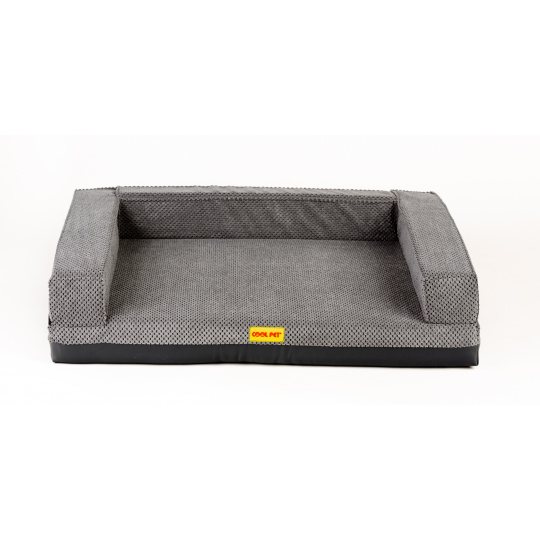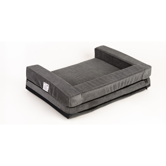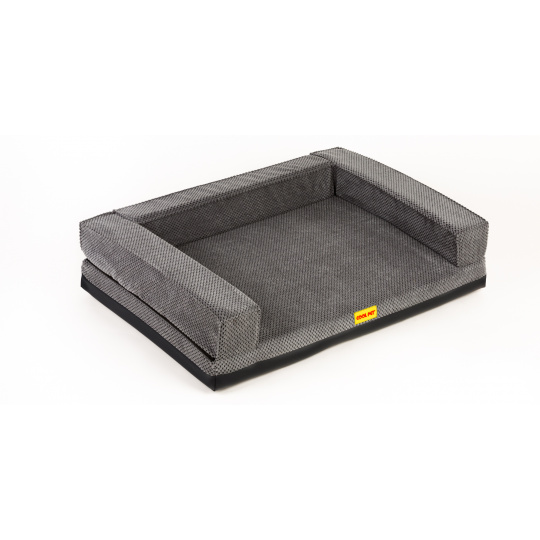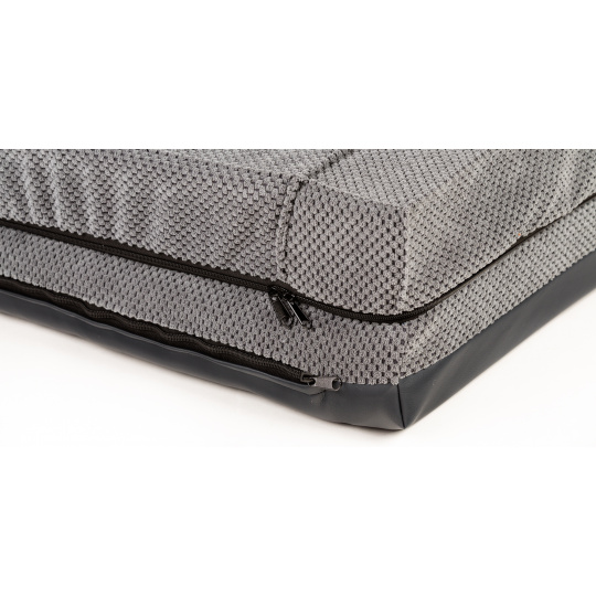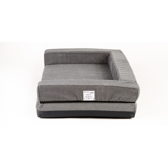Orthopedic bed with padded edge - gray velour/gray eco leather,