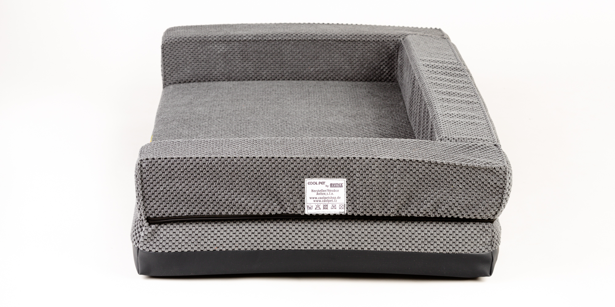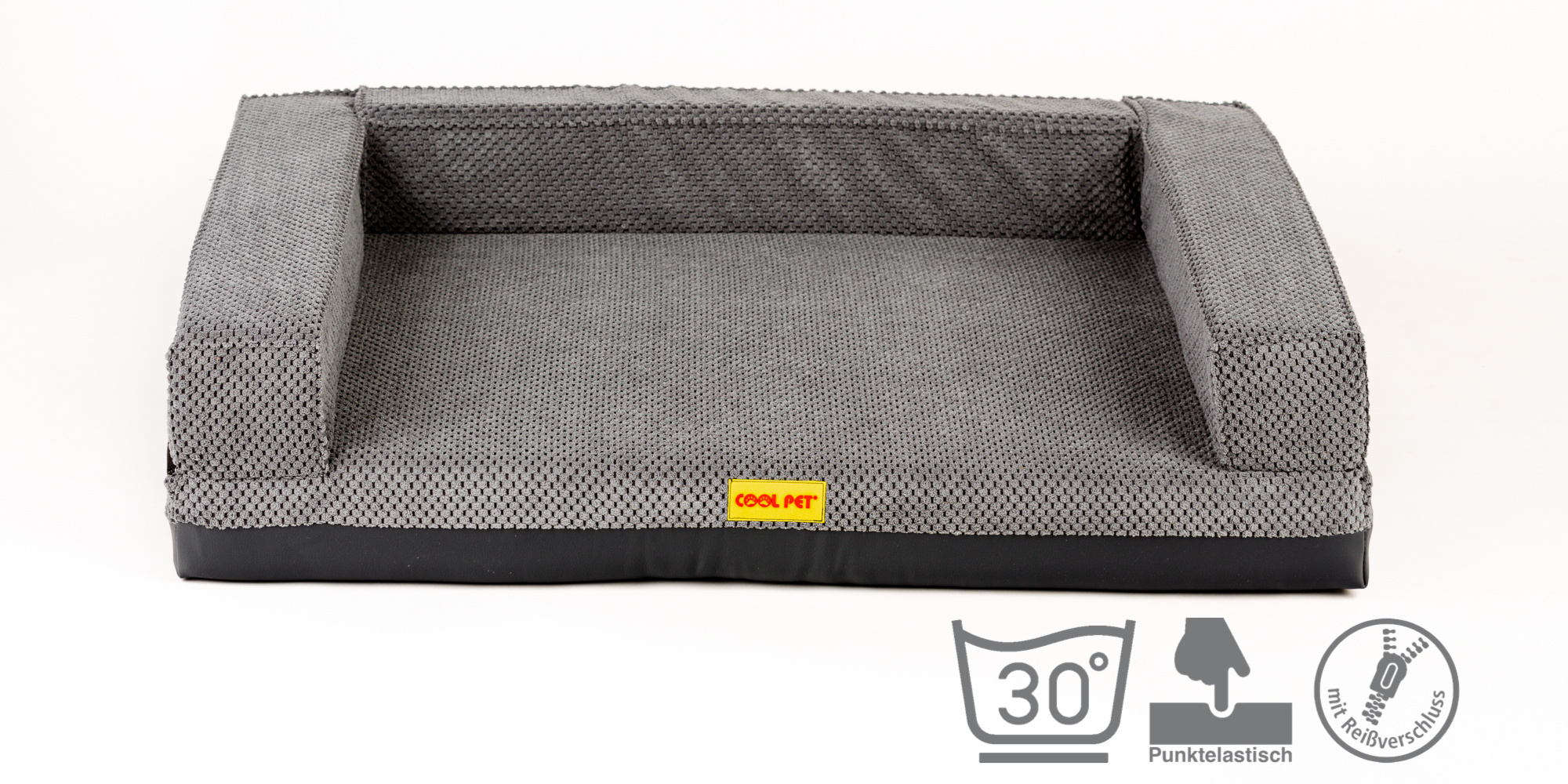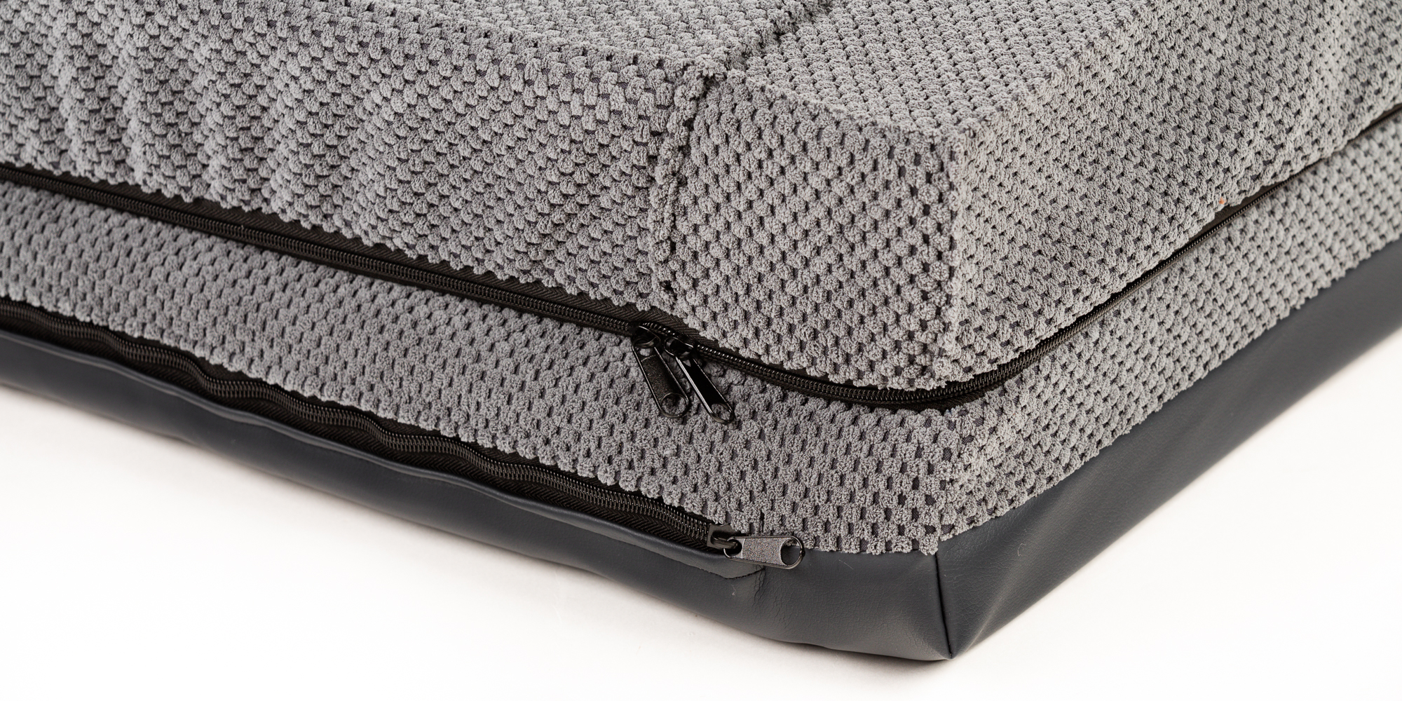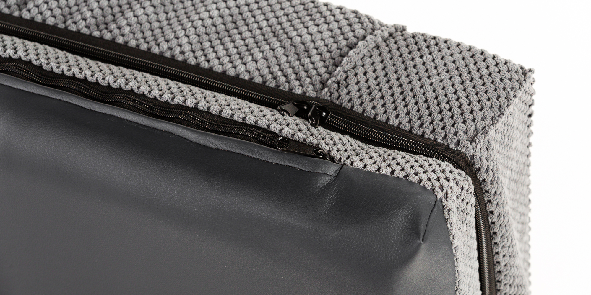 Orthopedic bed with padded edge - gray velour/gray eco leather,