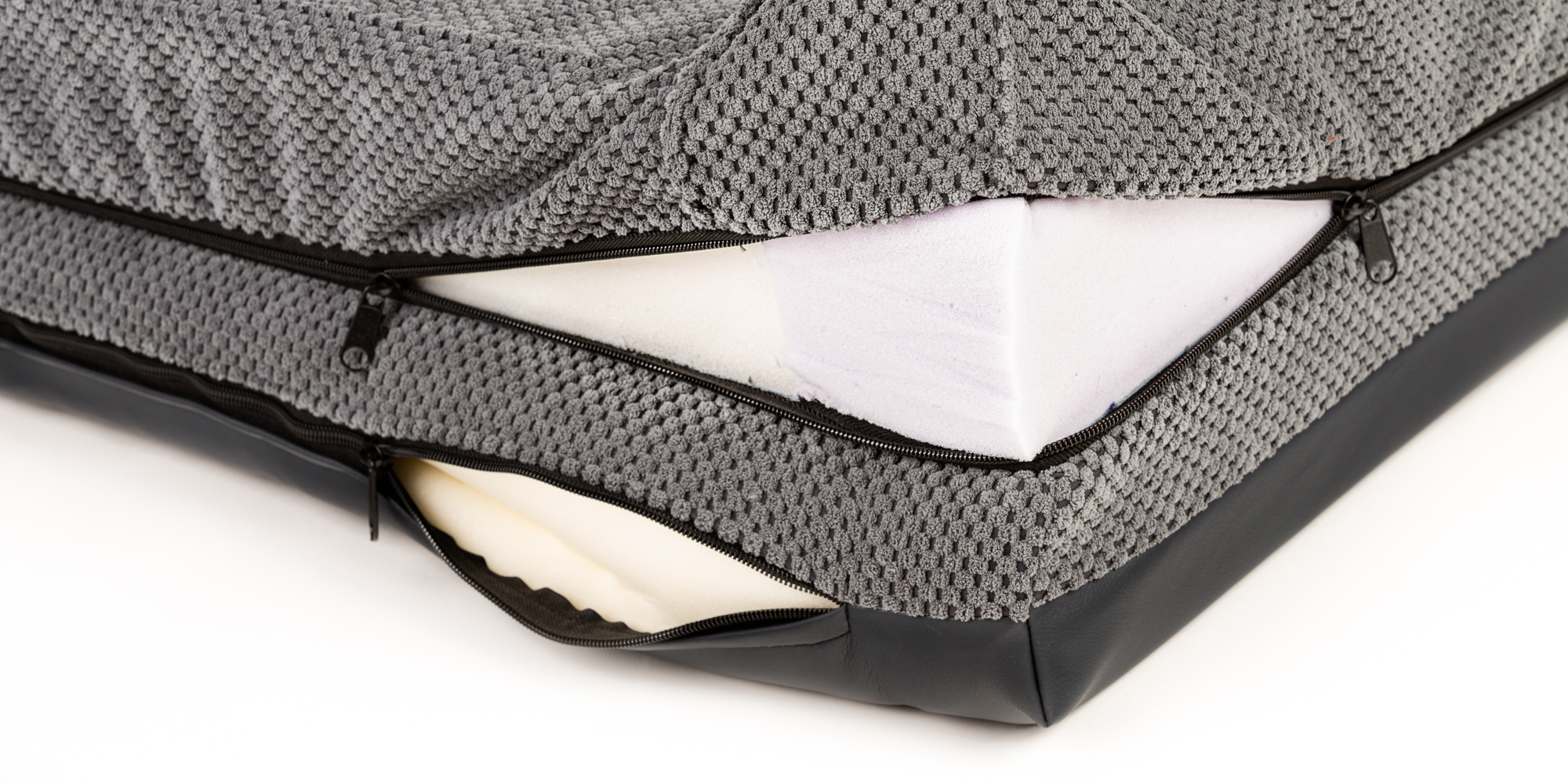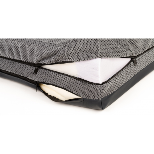 - Your dog will not have joint and spine problems thanks to high-quality orthopedic foam. The spatial density of our memory foam is 50kg/m3, which ranks among the highest quality memory foams, also used as mattress filling for beds for people.